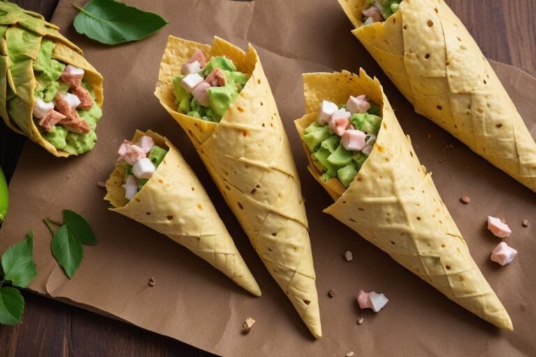 - Monte os cones somente na hora de servir. Se montar antes, o rap10 absorve a umidade do recheio e perde a crocância que é o charme da receita.