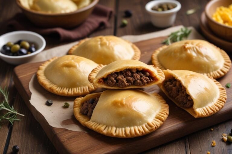 Tem pratos que chegam à mesa e fazem todo mundo parar o que está fazendo. A empanada simples é exatamente assim: aquela massa dourada e crocante, com um recheio generoso de carne temperada, que cheira tão bem que ninguém consegue esperar esfriar para morder. Eu me lembro da primeira vez que aprendi essa receita — foi numa tarde de domingo, com a cozinha toda tomada pelo aroma de cominho e cebola refogada, e a família inteira se acotovelando para pegar a primeira unidade saída do forno. A empanada é um clássico da culinária latino-americana que cruzou fronteiras e conquistou o coração dos brasileiros de norte a sul. Diferente do que muita gente pensa, fazer empanada simples em casa não exige nenhuma habilidade especial: com ingredientes do dia a dia e uma técnica bem explicada, qualquer pessoa consegue um resultado digno de padaria gourmet. Nesta receita, a massa é feita com manteiga, o que garante aquela textura quebradiça e saborosa que a gente ama. O recheio leva carne moída bem temperada, azeitona e ovo cozido — combinação clássica e infalível. Sirva como prato principal no almoço ou como lanche reforçado no fim da tarde, e prepare-se para os elogios!