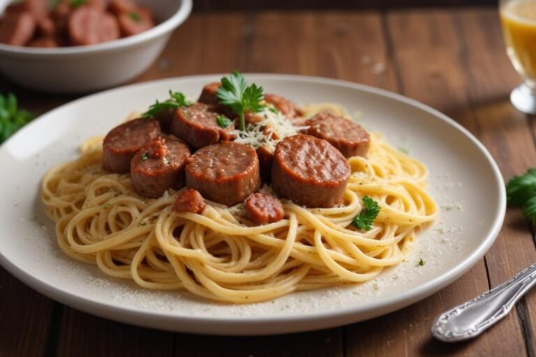 Tem dias em que a gente chega em casa cansado, com aquela fome que não espera, e o que mais quer é um prato que abrace de verdade. Foi exatamente assim que esta receita de espaguete cremoso com parmesão e calabresa entrou na minha vida — numa tarde fria de inverno, com os ingredientes que sobravam na geladeira e uma vontade enorme de conforto. O resultado? Um prato tão gostoso que virou presença garantida no cardápio semanal lá em casa. O espaguete é um dos tipos de massa mais amados do mundo, e por um bom motivo: ele abraça qualquer molho com perfeição. Aqui, ele se encontra com a calabresa defumada, que solta um óleo levemente apimentado e perfumado enquanto doura na frigideira, e com um molho cremoso de creme de leite e parmesão que envolve cada fio de massa como um cobertor quentinho. O segredo está no ponto certo do molho — nem líquido demais, nem pesado — e no parmesão ralado na hora, que faz toda a diferença no sabor final. É uma receita fácil, rápida, com ingredientes acessíveis e que impressiona qualquer pessoa à mesa. Vamos cozinhar?