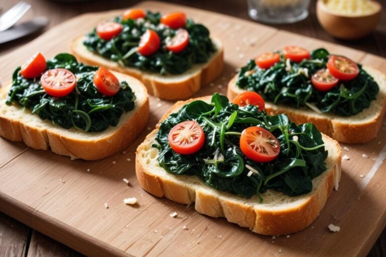 Sabe aquele fim de tarde em que a fome bate, a geladeira parece vazia e você não quer nem pensar em cozinhar algo complicado? Foi exatamente nesse cenário que esta receita de lanchinho rápido de espinafre surgiu lá na minha cozinha. Eu tinha um maço de espinafre sobrando, alguns pãezinhos amanhecidos na cesta e vontade de fazer algo gostoso sem muito esforço. O resultado foi uma tostada crocante por fora, recheada com um refogado aromático de espinafre com alho, cebola e tomate, finalizada com queijo gratinado douradinho por cima — simplesmente irresistível. O espinafre é uma das folhas mais nutritivas que existem, rico em ferro, vitaminas A e C, e combina perfeitamente com o sabor suave do pão assado e o queijo derretido. Além de ser rápido de fazer, esse lanchinho agrada adultos e crianças, funciona como entrada, lanche da tarde ou até um prato principal leve. Com ingredientes simples que você provavelmente já tem em casa, você vai colocar essa receita na rotina com certeza. Prepare-se para receber elogios!