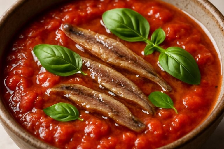 O molho de tomate com aliche é daquelas receitas que parecem simples mas entregam um sabor completamente fora do comum — intenso, profundo e com aquele toque salgado que faz todo mundo pedir a receita. Se você nunca experimentou adicionar aliche ao molho de tomate, prepare-se para uma revelação na cozinha.
