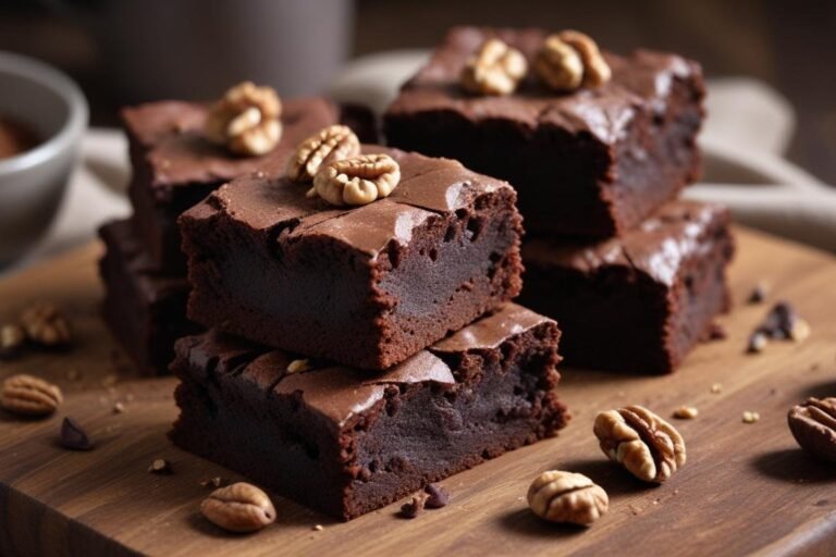 Tem uma memória afetiva que muita gente guarda com carinho: aqueles pedaços de brownies denso, úmido e perfumado que saiu quentinho do forno na casa da avó ou numa confeitaria especial. O brownie é uma das sobremesas mais amadas do mundo — e não é à toa. Originário dos Estados Unidos no final do século XIX, ele conquistou o Brasil com sua textura única: uma casquinha levemente crocante por fora e um miolo cremoso, quase fudgy, por dentro. O segredo está no equilíbrio entre o chocolate de qualidade, a gordura certa e o ponto exato de forno — nem demais, nem de menos. Nesta receita, você vai aprender a fazer brownies caseiros que ficam com aquela camada brilhante e craquelada por cima, recheados com pedaços de chocolate meio amargo e crocantes nozes picadas. Não precisa de batedeira, não precisa de técnica de confeiteiro profissional. Basta uma tigela, uma colher e vontade de fazer algo delicioso. Sirva puro, com uma bola de sorvete de creme ou acompanhado de café — do jeito que for, ele vai desaparecer do prato em segundos. Bora fazer?