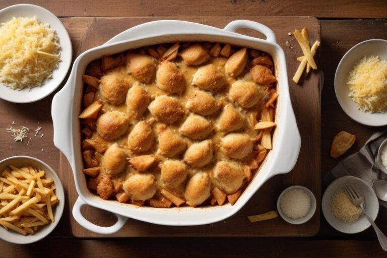 O segredo está na combinação certeira de ingredientes que já vêm prontos para o uso. O frango desfiado em lata, por exemplo, é um coringa que pouca gente explora ao máximo — e aqui ele brilha junto com milho, ervilha, palmito, champignon, creme de leite e maionese, formando um recheio incrivelmente cremoso que gratina lindo no forno. O resultado é um prato principal generoso, que serve bem cinco pessoas e combina perfeitamente com arroz branquinho e batata palha crocante. Pode parecer simples demais, mas é justamente essa simplicidade que torna a receita das sete latas tão inesquecível e repetida nas mesas brasileiras há décadas.