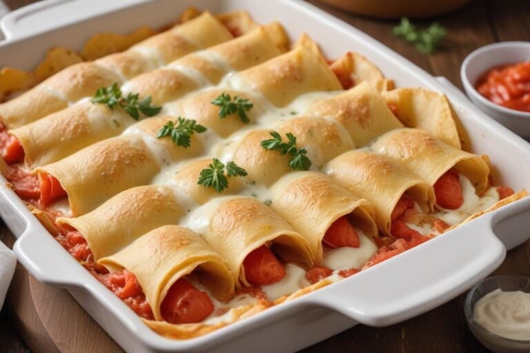 Tem aquele dia em que a família está reunida, o estômago está roncando e você quer servir algo que impressione sem passar horas na cozinha — foi exatamente assim que o rondele prático entrou de vez no meu repertório culinário. Essa receita é uma versão descomplicada e muito saborosa das clássicas panquecas enroladas, gratinadas ao forno com um molho encorpado de requeijão e tomate que derrete na boca. O segredo está na leveza da massa, que fica macia por dentro e douradinha por fora, abraçando o recheio de presunto e mussarela com aquela cremosidade irresistível. A panqueca, base desta receita, é um preparo milenar presente em diversas culturas ao redor do mundo, mas no Brasil ela ganhou alma própria quando encontrou o requeijão e o molho de tomate. O resultado é um prato que conquista crianças e adultos igualmente, perfeito para o almoço de domingo ou para um jantar especial durante a semana. Prepare-se para receber elogios — e pedidos de repeteco!