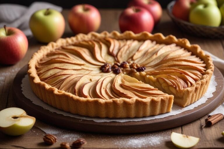 Tem receita que chega na mesa e faz todo mundo parar o que está fazendo. A torta alemã de maçã é exatamente assim — aquela sobremesa de visual rústico, com a gradezinha de massa dourada por cima e o perfume inconfundível de maçã cozida que toma conta da cozinha inteira. Lembro da primeira vez que provei uma fatia dessas numa tarde fria de junho, numa pequena confeitaria do interior de Santa Catarina, região fortemente influenciada pela imigração alemã. Foi amor imediato. A maçã, fruta símbolo da culinária europeia e amplamente cultivada no sul do Brasil, é a protagonista absoluta desta receita. Quando combinada com uvas-passas e um toquezinho de vinho tinto, ela se transforma num recheio aromático e levemente ácido que equilibra perfeitamente a riqueza da massa amanteigada. Se você quiser conhecer as regiões brasileiras onde essa tradição alemã ainda pulsa com força, como Blumenau e Pomerode, vale muito uma visita — dá uma conferida em Viagem do Sonho para se inspirar. Aqui, o segredo está na massa: ela não é crocante como uma farofa, nem mole como um bolo. É amanteigada, compacta e deliciosa. Vamos fazer juntos?