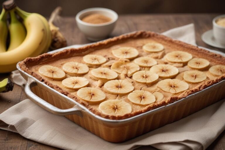Aprenda a fazer uma Torta Rápida de Banana irresistível com massa que se forma sozinha no forno! Receita fácil, econômica e pronta em 40 minutos.